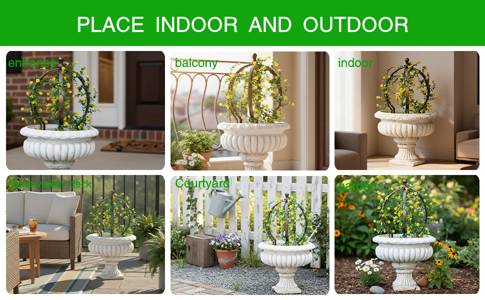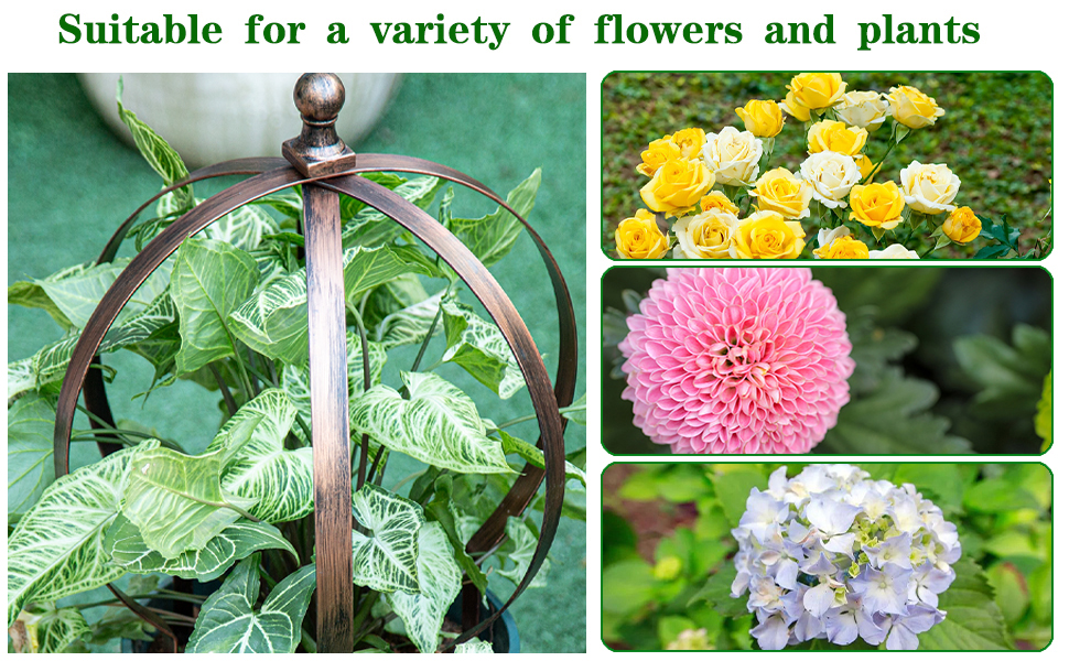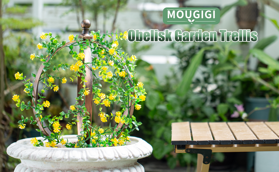 Bronze powder-coated metal trellis supports climbing roses & vines. 12.6x17.5in decorative obelisk with easy assembly. Weather-resistant for outdoor/indoor use. Space-saving storage design.