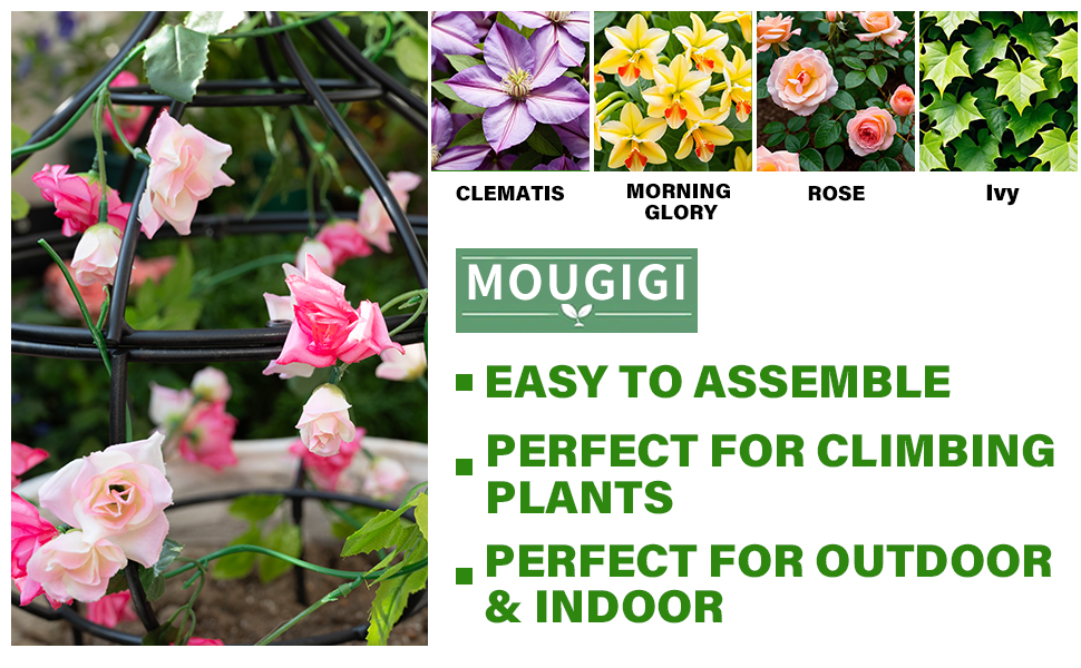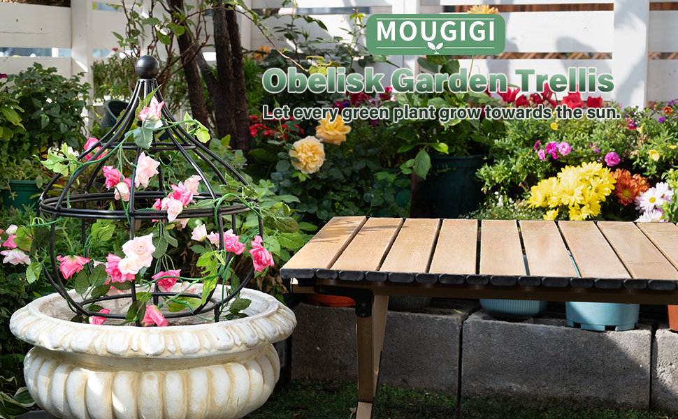 Patented metal obelisk trellis with corrosion-resistant finish. Easy assembly, perfect for roses & climbing plants indoors/outdoors. 12x8.1in decorative support for gardens & patios.