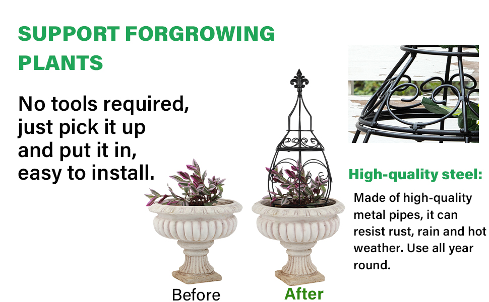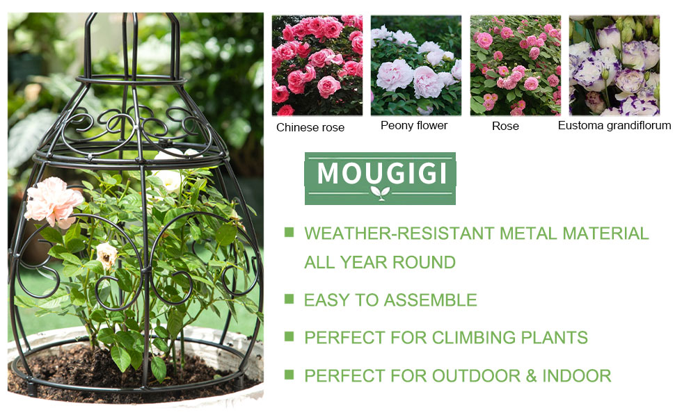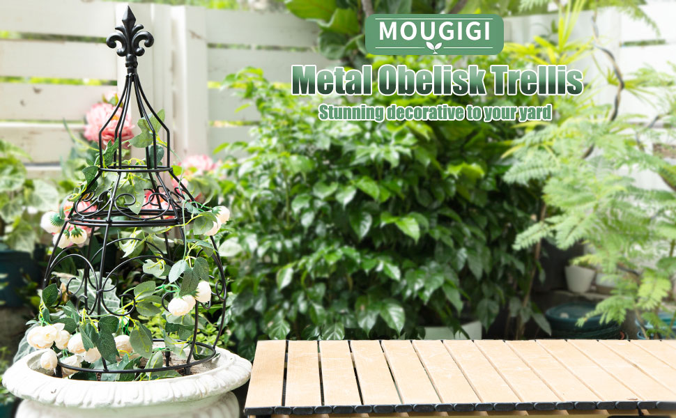 Durable 29-inch metal obelisk trellis with corrosion-resistant coating. Supports climbing plants & roses indoors/outdoors. No-tool assembly & elegant design perfect for gifting.