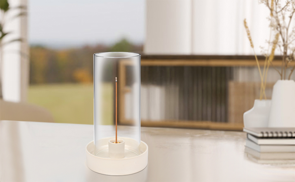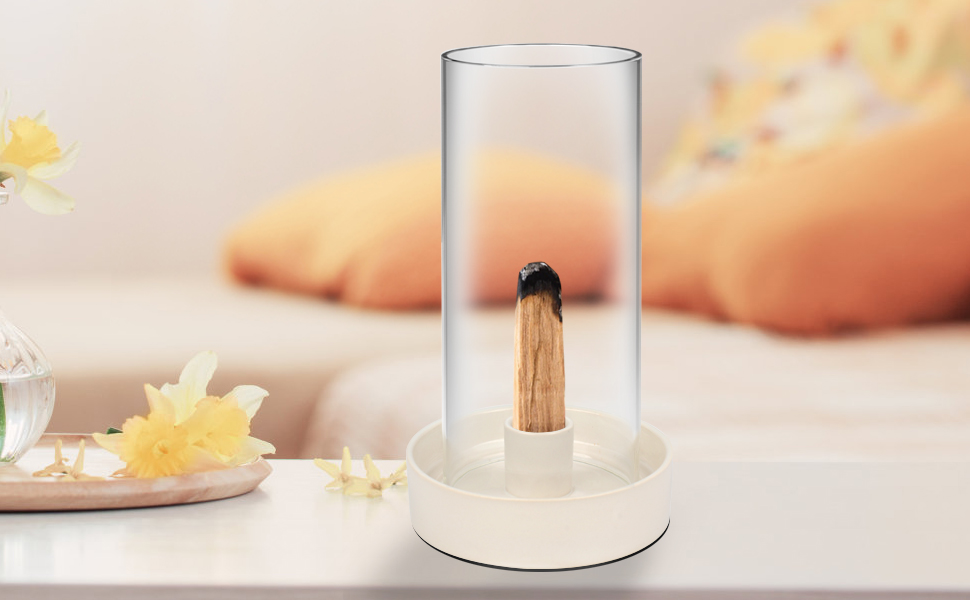Multi-functional ceramic burner for incense sticks, Palo Santo & sage. 9-hole design fits various incense types. Removable glass cover prevents ash scatter. Easy to clean & stylish zen decor.