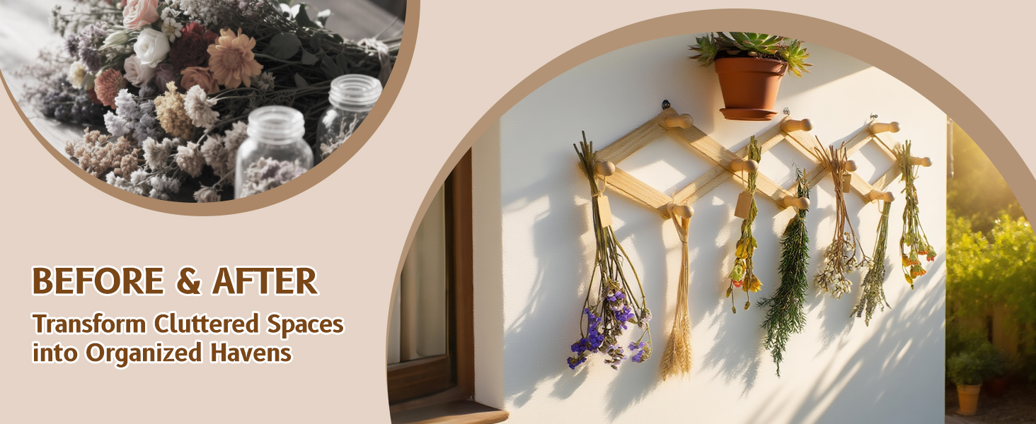 Adjustable Herb Drying Rack - Holds 10 Bouquets with Adhesive Hooks