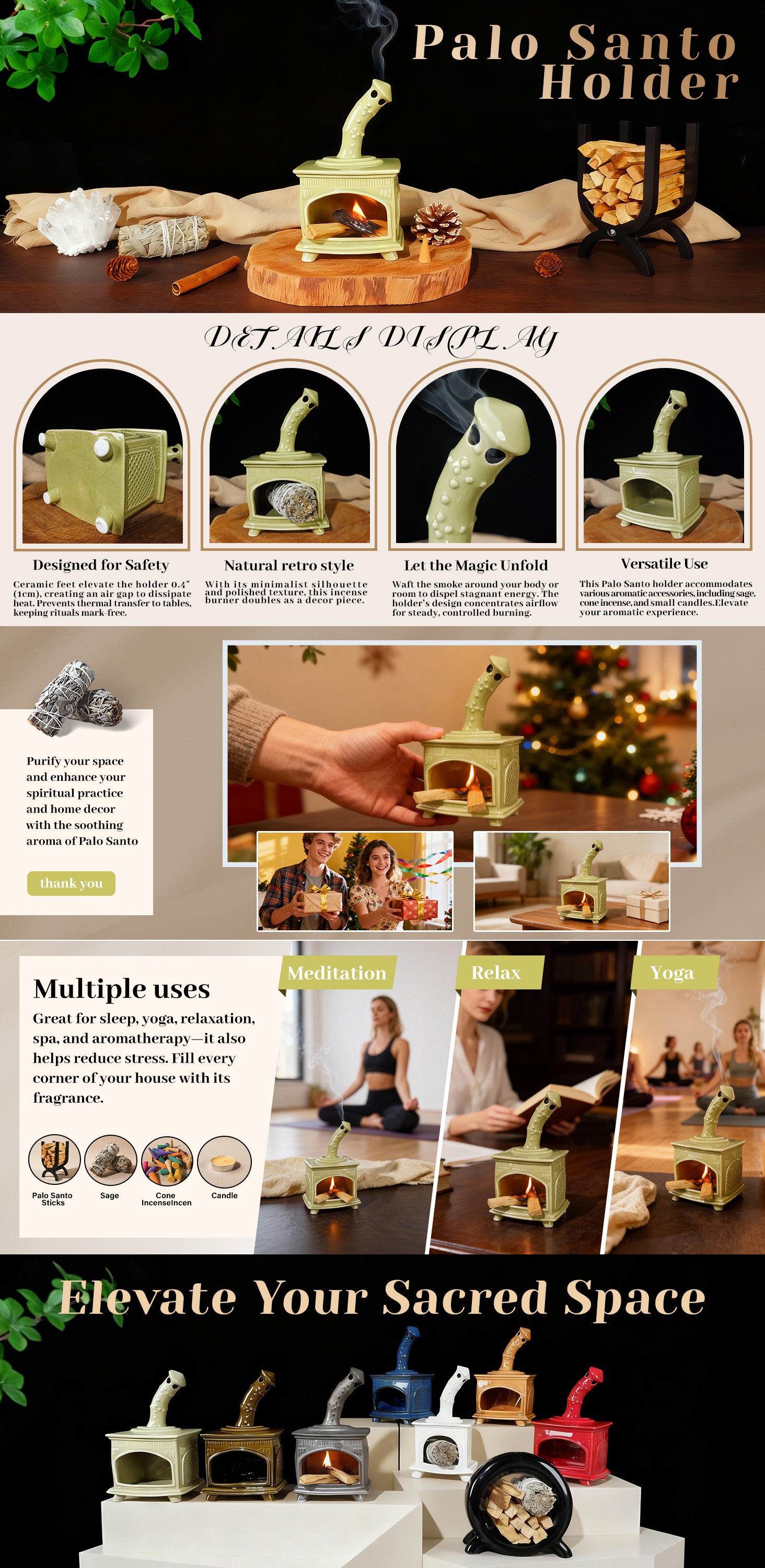 Fireplace Incense Holder for Palo Santo & Sage