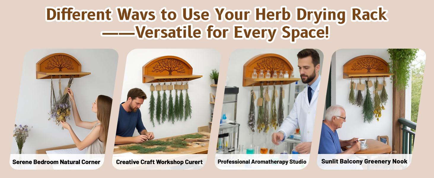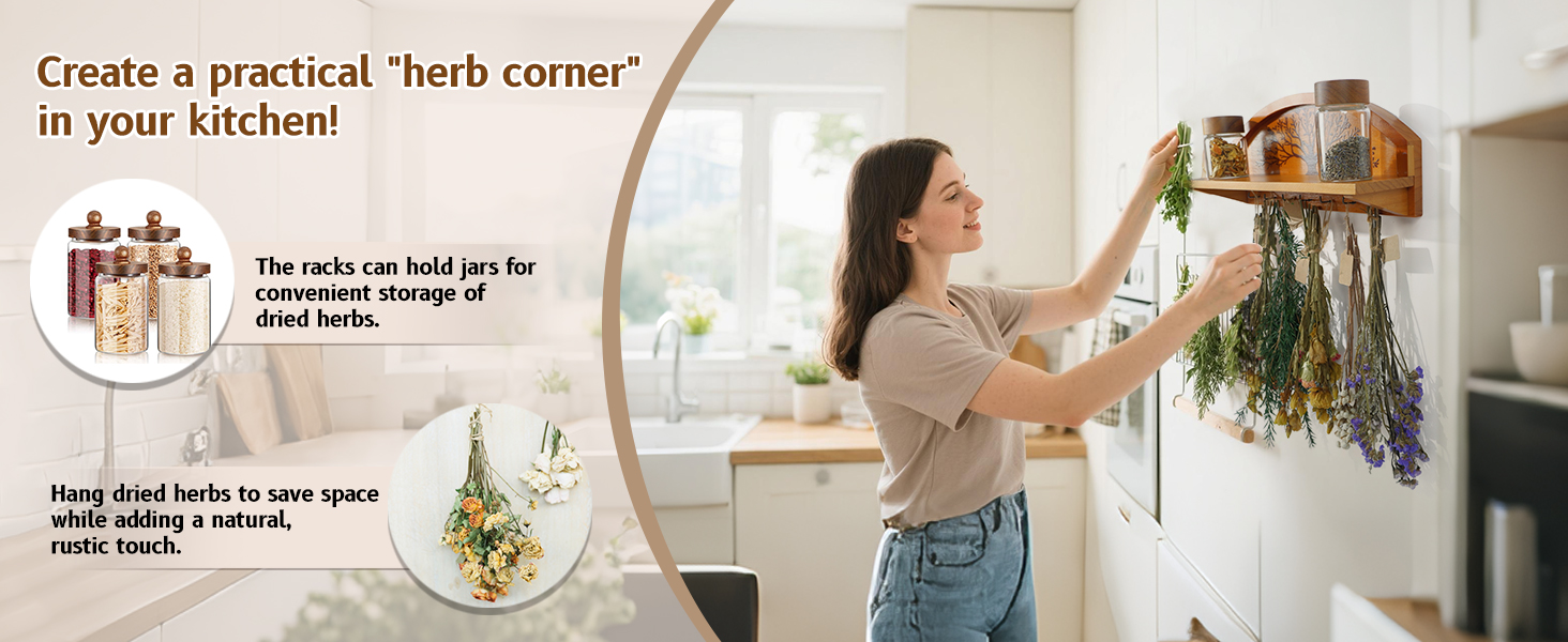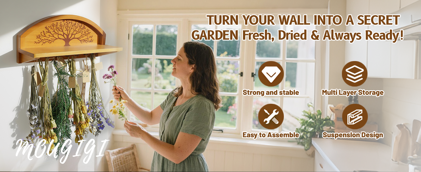 Gold foil tree-shaped drying rack with 7 hooks holds herbs & flowers. Includes 15 jute ropes & labels for organized drying. Enhances kitchen decor while providing 30% faster drying than flat racks..png?w=1464&h=600)