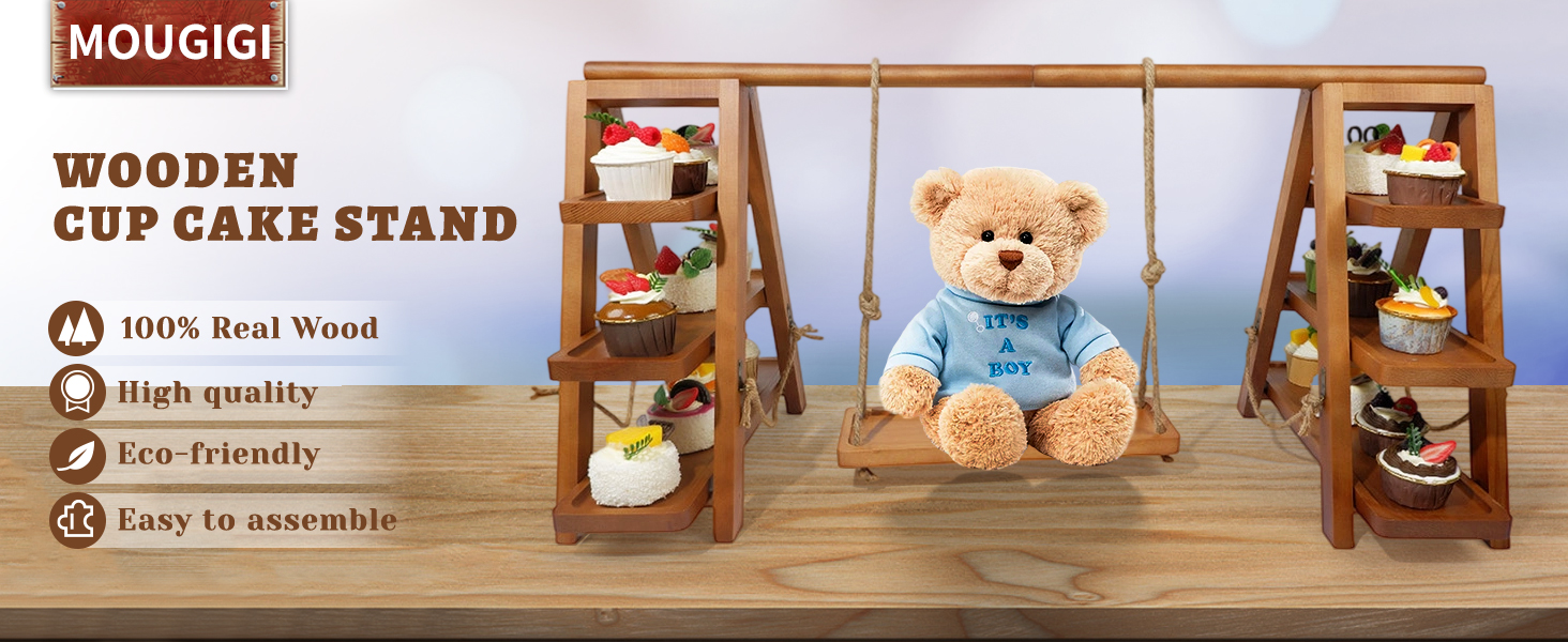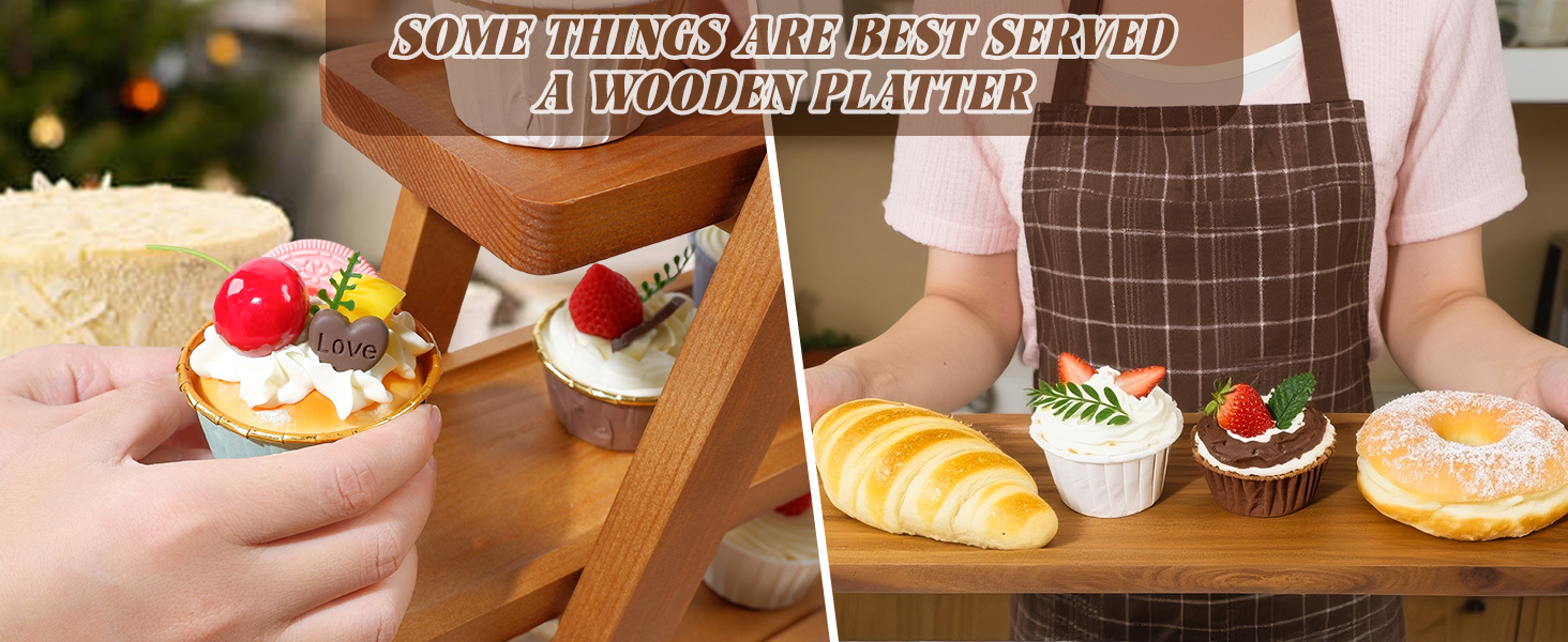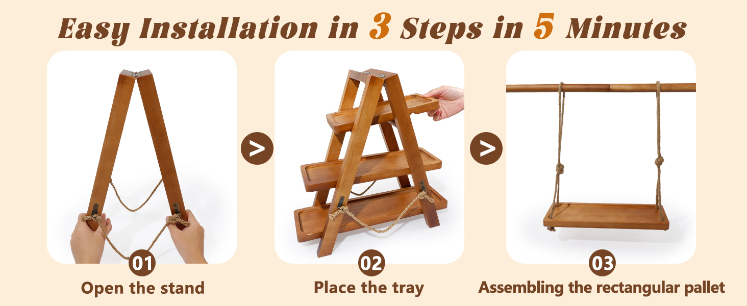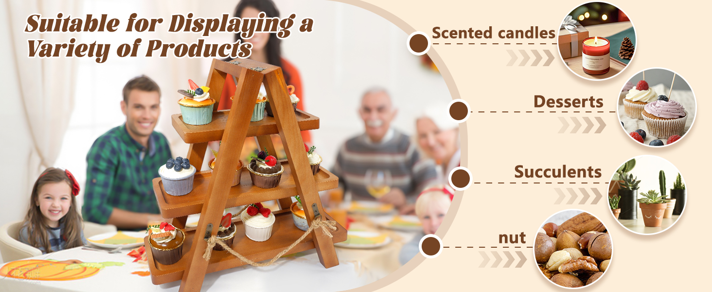 Wooden 3-tier stand with removable trays & foldable design. Rustic A-frame holds cakes, pastries & fruits. Perfect for weddings, parties & events. Easy storage & cleaning. Ideal gift.
