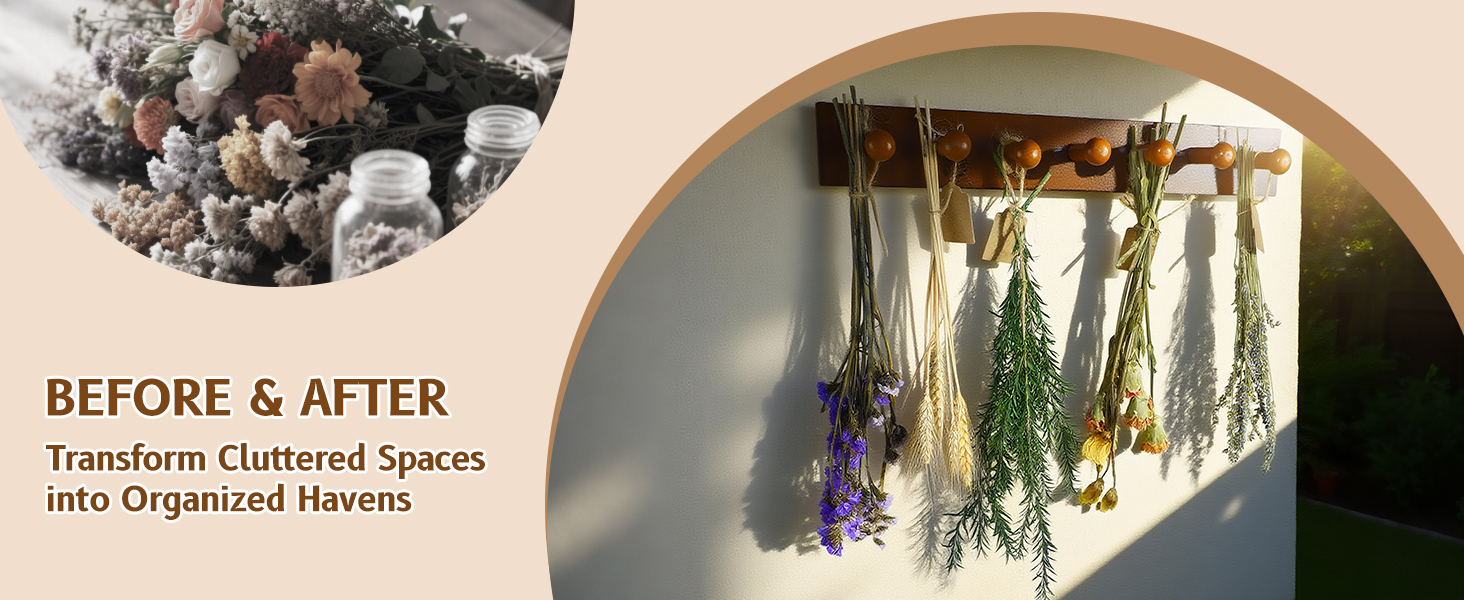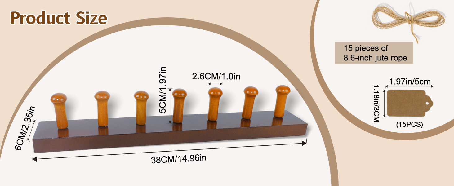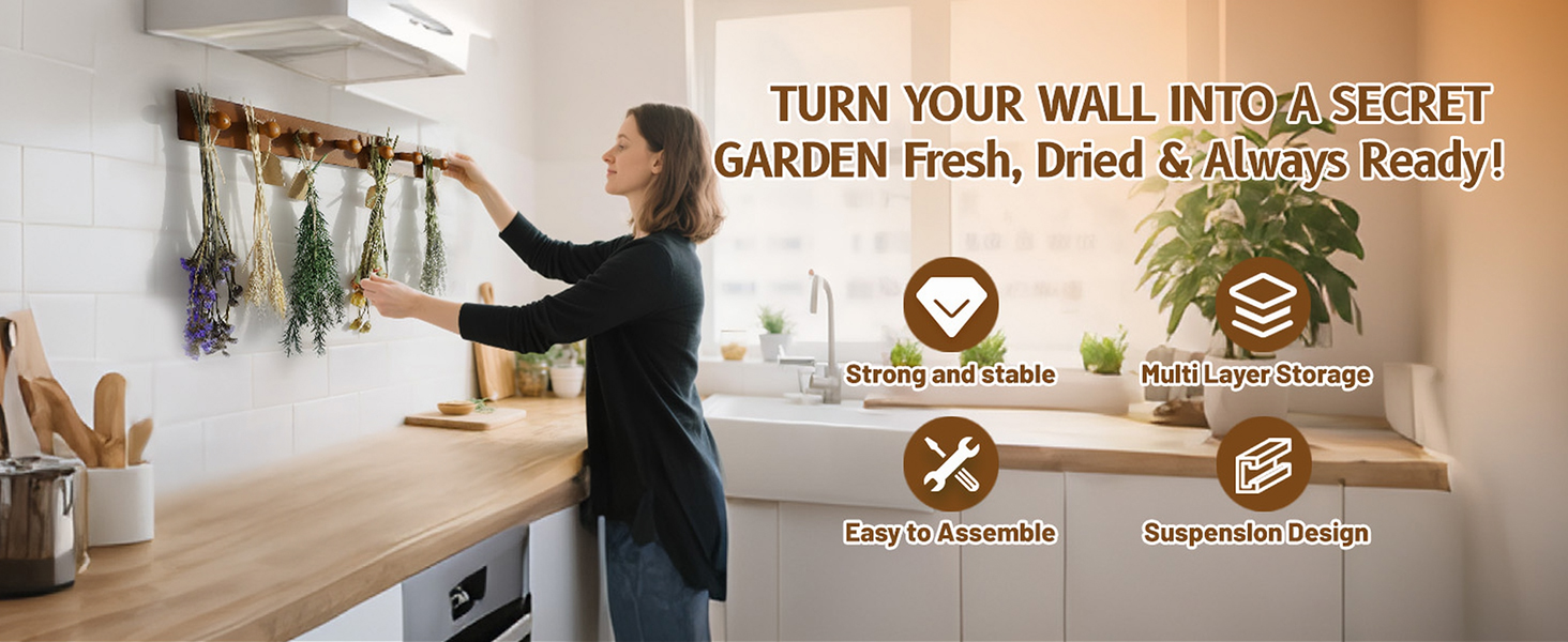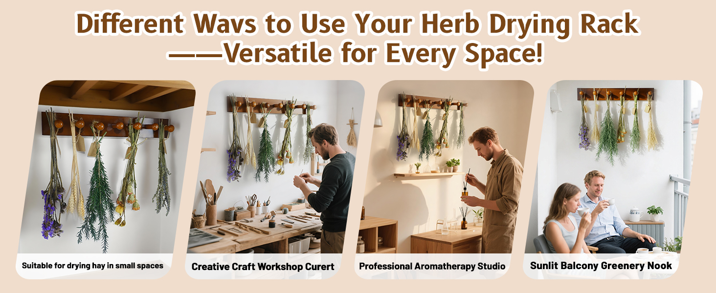 Pine wood drying rack holds 7 herb bouquets using natural air-drying. Includes 15 gift labels & jute ropes. Perfect for kitchens, windows & small spaces. Multi-functional wall art & unique gardening gift.