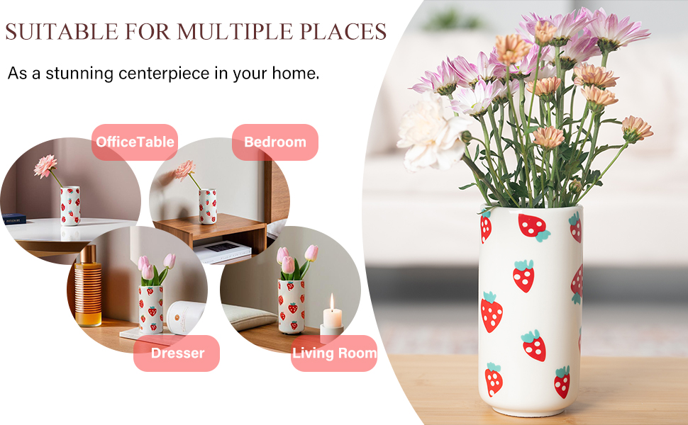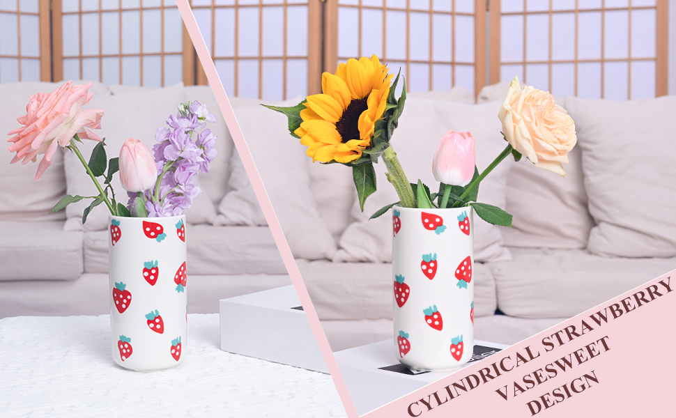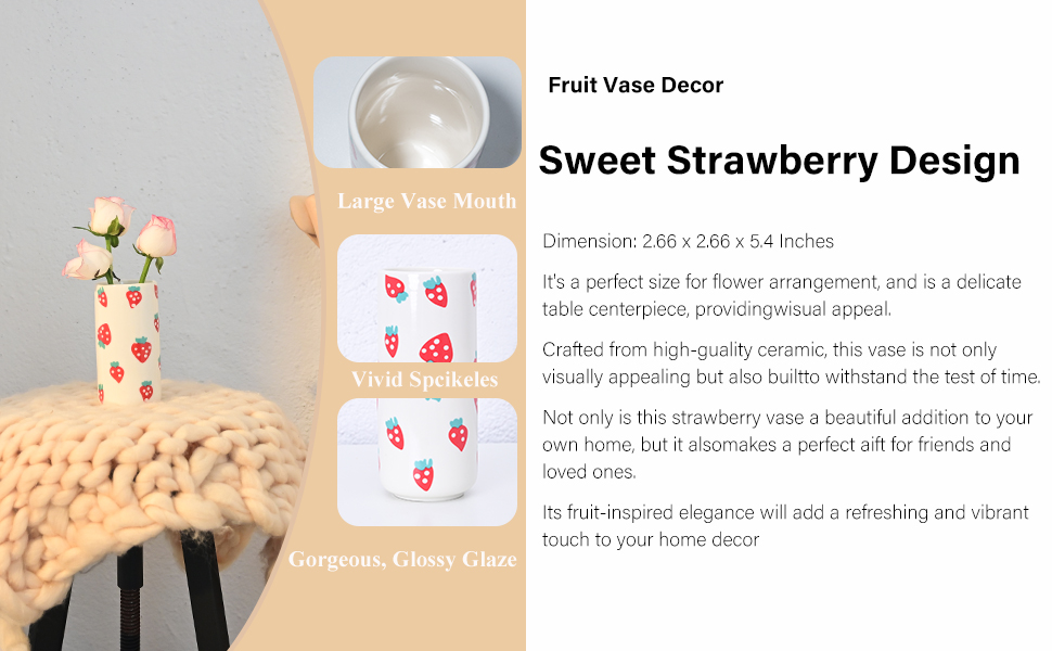 Strawberry Ceramic Vase - Whimsical Floral Centerpiece