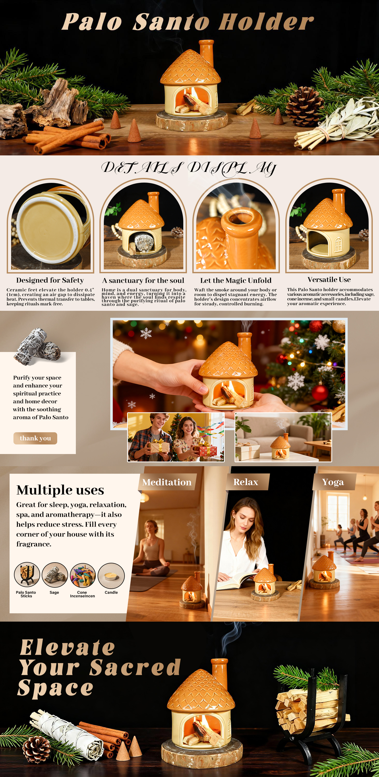 Yellow House Ceramic Palo Santo Burner - Mini Chiminea Incense Holder